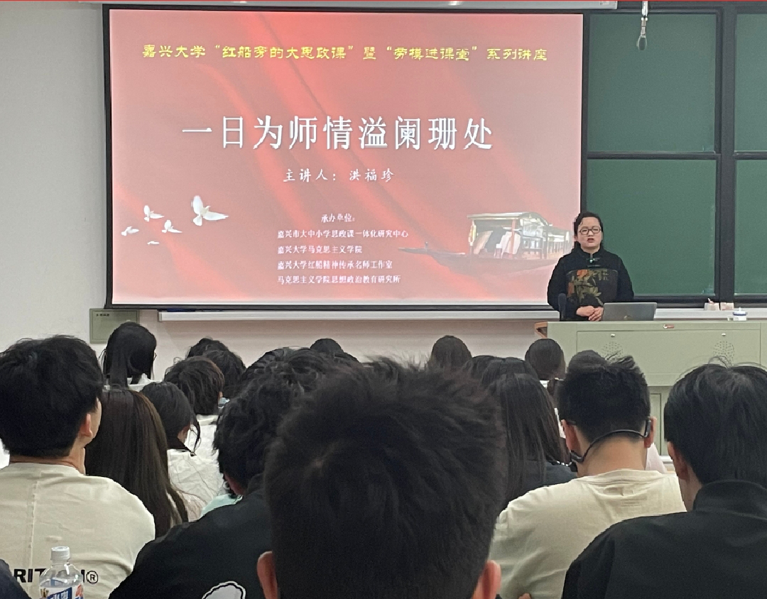 “劳模进课堂”系列讲座是学校扎实推动“‘红船精神+’大思政课”建设的重要举措之一,自2021年以来通过邀请各行业的“全国劳动模范”和“先进人物”进课堂,与“榜样人物”面对面交流,实现把“大先生”请进来、用好社会大资源、大平台,让思政课“活起来”,真正把思政课讲到学生心坎里。