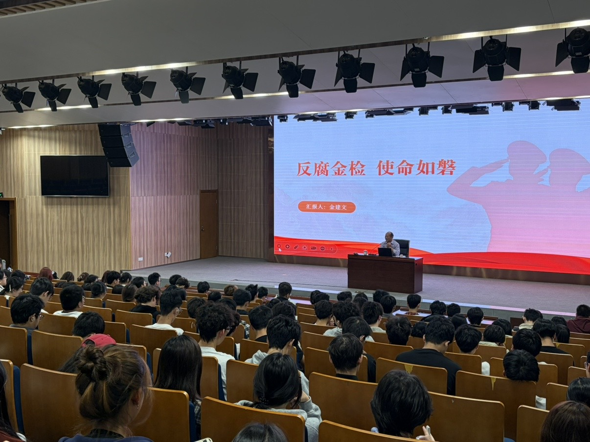 图书馆报告厅顺利举行。衢州市人民检察院三级高级检察官、浙江省检察业务专家、司法高级会计师金建文以“反腐金检 使命如磐”为题,为现场师生带来了一场具有专业深度与思想温度的精彩报告。