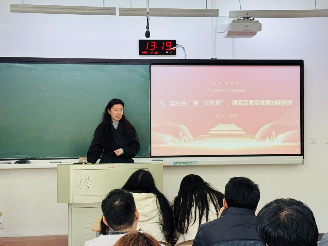 12月17日宣讲会上,学校学习贯彻党的二十届四中全会精神宣讲团成员、五楼自拍