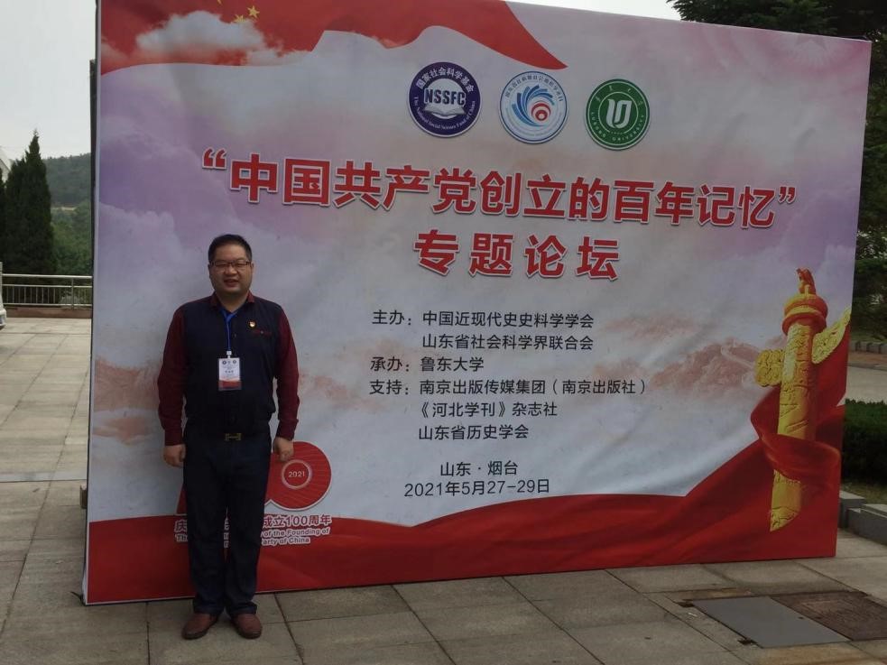 为庆祝中国共产党成立100周年,5月27至29日,由中国近现代史史料学学会和山东省社科联主办,南京出版传媒集团、《河北学刊》杂志社、山东省历史学会支持、鲁东大学承办的“中国共产党创立的百年记忆”专题论坛在鲁东大学举办。五楼自拍 教师邱辰禧参加了本次学术会议。