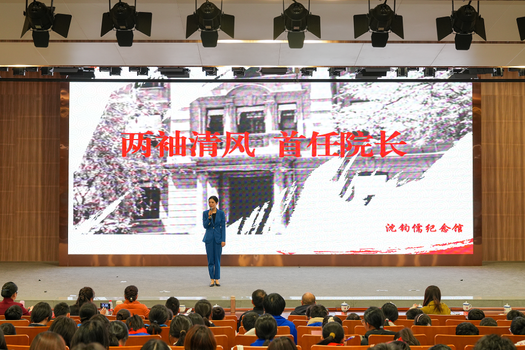 沈钧儒纪念馆讲解员富稚钧主讲题为《两袖清风首任院长》的思政课。她讲述了国家三级文物“沈钧儒最高人民法院院长任命书”背后的故事,以及沈钧儒先生作为新中国首任最高人民法院院长克己奉公、认真履责的事迹,将听众带回到新中国成立初期,百废待兴、法治建设亟待加强的历史时刻。