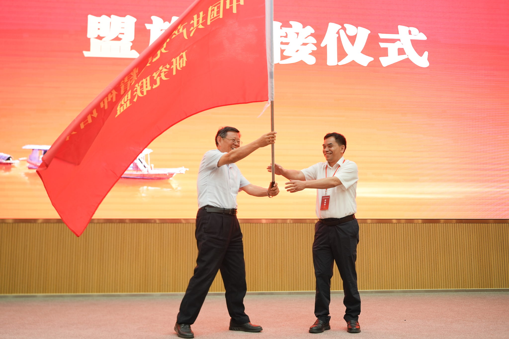 党委书记麦培年接旗。
