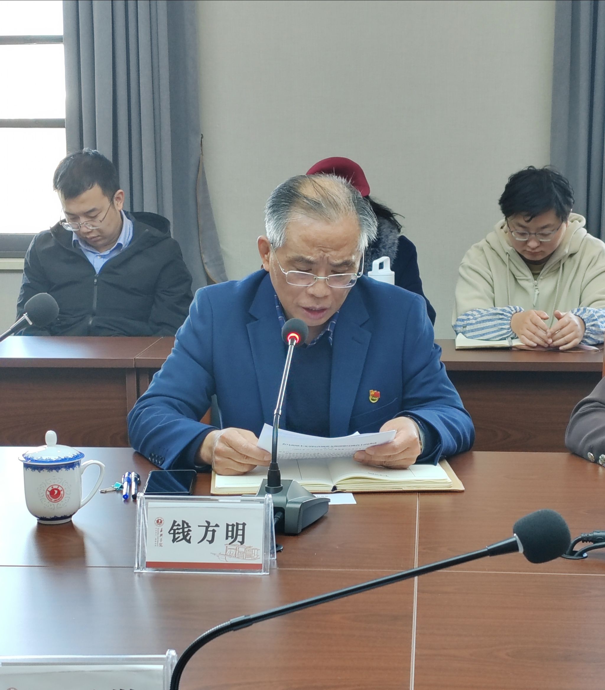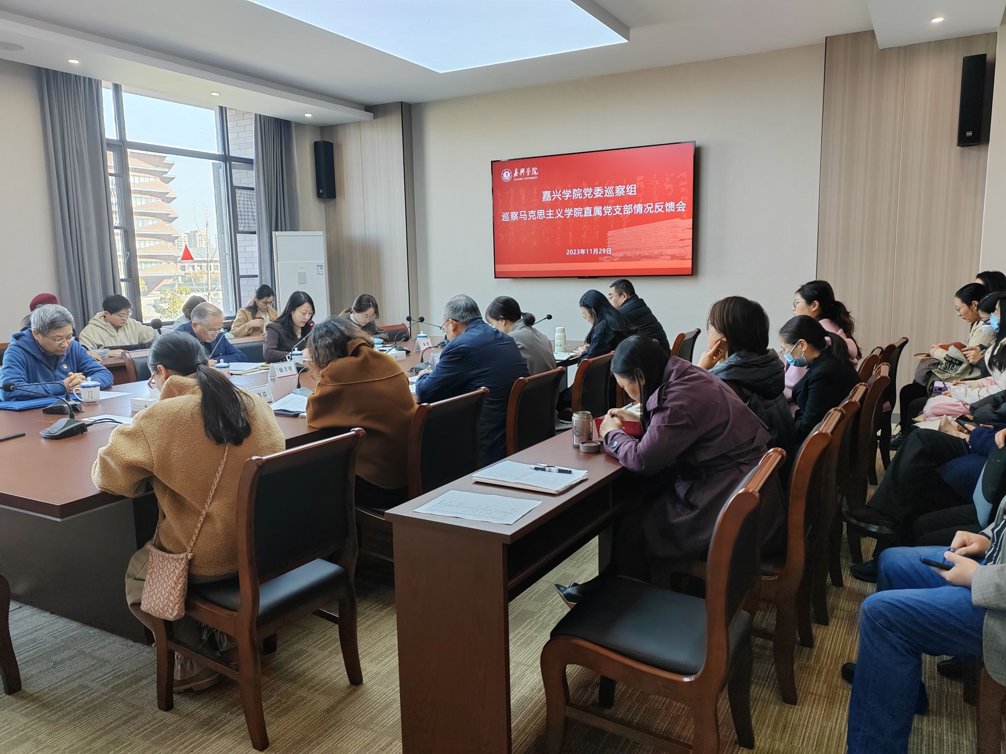 2023年11月29日上午,校党委巡察组巡察五楼自拍 直属党支部情况反馈会在厚德楼350会议室召开。校党委副书记钱方明、巡察组组长战昕、巡察组工作人员、学院教职工和红船中心党员参加会议。会议由五楼自拍 直属党支部书记宋之霞主持。会前,校党委巡察组向学院班子成员进行了巡察情况的反馈。