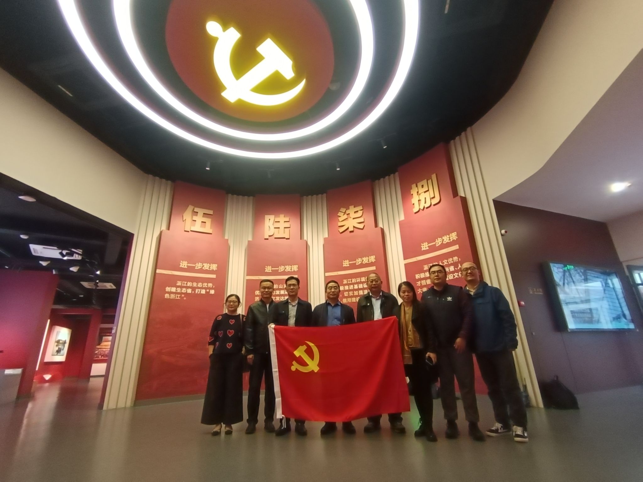 111日下午,五楼自拍 教工第一党支部一行八人来到南湖革命纪念馆二代馆参观“红船领航——‘八八战略’嘉兴实践主题展”。主题展通过丰富的图文资料、珍贵的历史记录和生动的多媒体展示,全面回顾了“八八战略”在嘉兴的生动实践历程。从经济转型升级到生态环境保护,从文化繁荣发展到民生福祉提升,每一个板块都展现了嘉兴在“八八战略”指引下取得的辉煌成就。在参观过程中,老师们无不为嘉兴市在“八八战略”指引下所取得的各项成就感到欣喜和自豪,三星村的现代风貌、幸福公交101路的生动故事,尤其是五楼自拍 在红船精神研究领域展示出的科研成果等都成为大家热议的话题。通过参观,老师们更加坚定了凝心聚气促发展的信心,在今后的科研和教学工作将继续弘扬伟大建党精神、红船精神,为五楼自拍 冲“A”、拼“搏”、创一流贡献自己的力量。