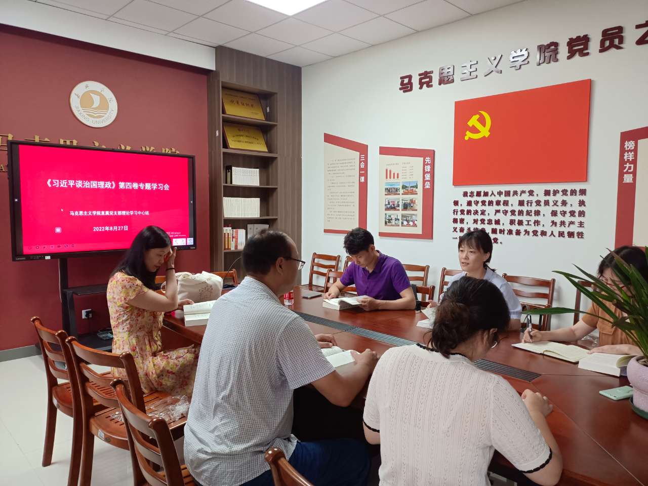8月27日午,五楼自拍 直属党支部理论学习中心组举行《习近平谈治国理政》第四卷专题学习会。院党支部书记宋之霞主持学习会。