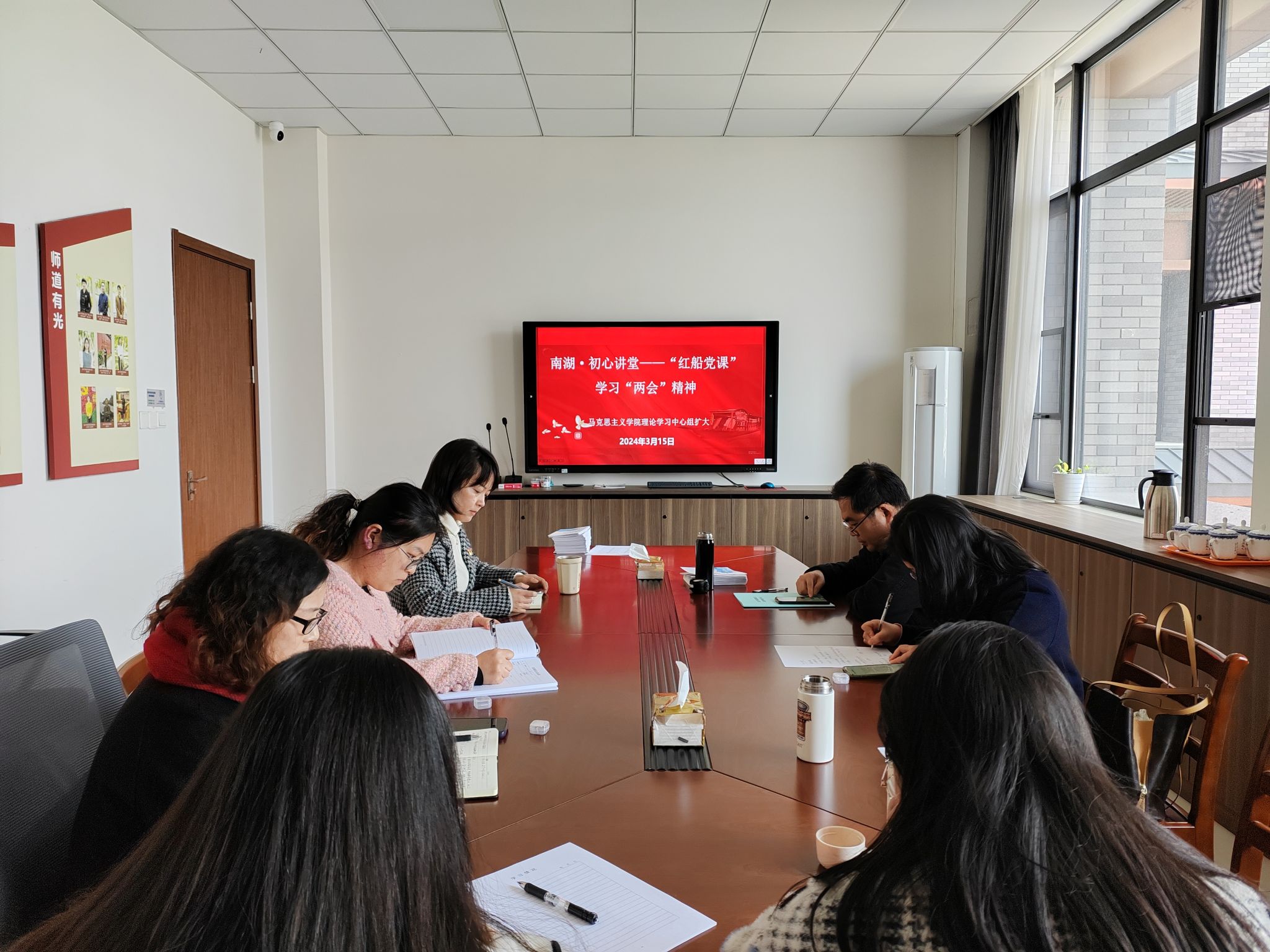 3月15日中午五楼自拍 组织理论学习中心组(扩大)成员厚德楼346会议室召开学习会议,专题学习2024年全国两会精神。中心组全体成员和各支部负责人参加会议。