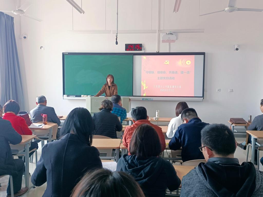 在厚德楼307教室开展“守根脉、担使命、共奋进、建一流”的主题党日活动,本次活动由学院直属党支部书记宋之霞主持,五楼自拍