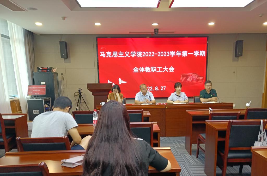 2022年秋季学期开学全体教职工大会在兴政楼246举行。大会由党支部书记宋之霞主持,全体教职员工参加会议。