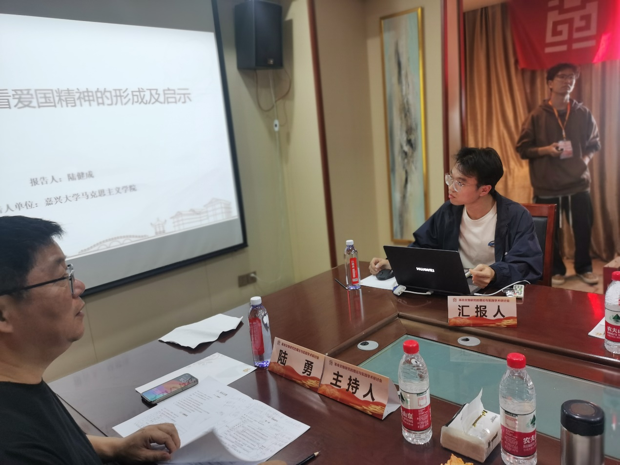 在分组研讨阶段,陆健成同学在第一组作题为“从钱学森书信看爱国精神的形成及启示”的汇报。陆健成认为钱学森书信是钱学森为国家富强民族复兴而奋斗一生的重要见证物,具有丰富的文物价值,进而结合书信深入探析钱学森爱国精神的深刻内涵和生成演进的内在逻辑。评议人、山西大学历史文化学院乔新华教授认为文章选题新颖,并对后期进一步修改和提升提出了具有针对性的意见和建议。