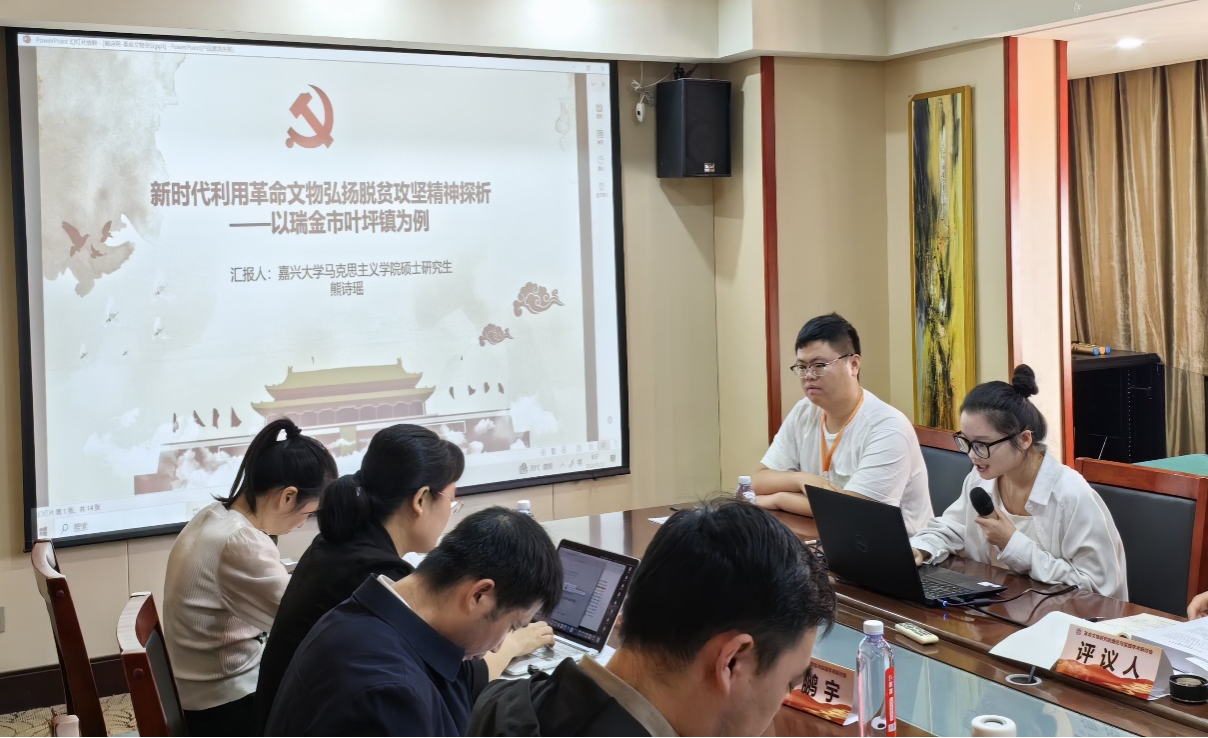 熊诗瑶同学在第二组研讨中,作题为“新时代利用革命文物弘扬脱贫攻坚精神探析——以瑞金市叶坪镇为例”的汇报。熊诗瑶以瑞金市叶坪镇为案例,探讨了革命文物在新时代语境下如何有效转化为弘扬脱贫攻坚精神的文化资本,通过对叶坪镇革命文物的历史价值与现实意义的深入分析,提出了创新性的保护和利用策略。评议人、平型关大捷纪念馆白卫疆副馆长认为,该文对如何充分利用革命文物助推乡村振兴提供了有益借鉴,并建议增加对具体措施和成效的深入分析,以使文章更有说服力。