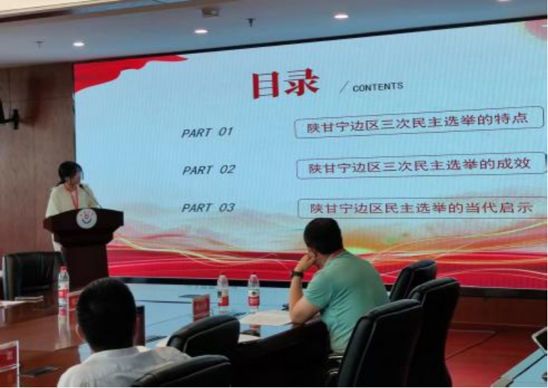 研究生张璐参加了分论坛,并作题为“陕甘宁边区三次民主选举的成效及启示”的论文汇报,主要围绕陕甘宁边区三次民主选举的特点、成效以及对现代民主政治建设的启示三个方面展开汇报。与会的专家、教授对论文后期进一步修改和提升提出了有针对性的意见和建议。