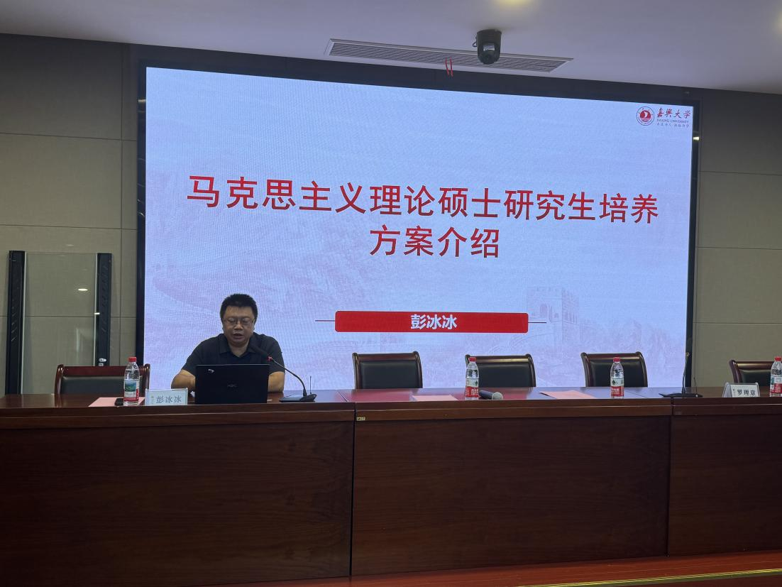 开学典礼后半程,学院开展了“马克思主义理论专业教育”的主题讲座。讲座由马克思主义理论专业负责人彭冰冰主讲。彭冰冰对马克思主义的学科概况、学科优势与研究方向、特色与资源优势、研究生培养方案等方面进行解读。他针对研究生的学习提出建议,研究生应培养独立写作能力,积极参与学术活动、专业实践与公益实践,尽早明确发展方向,规划深造或就业路径。